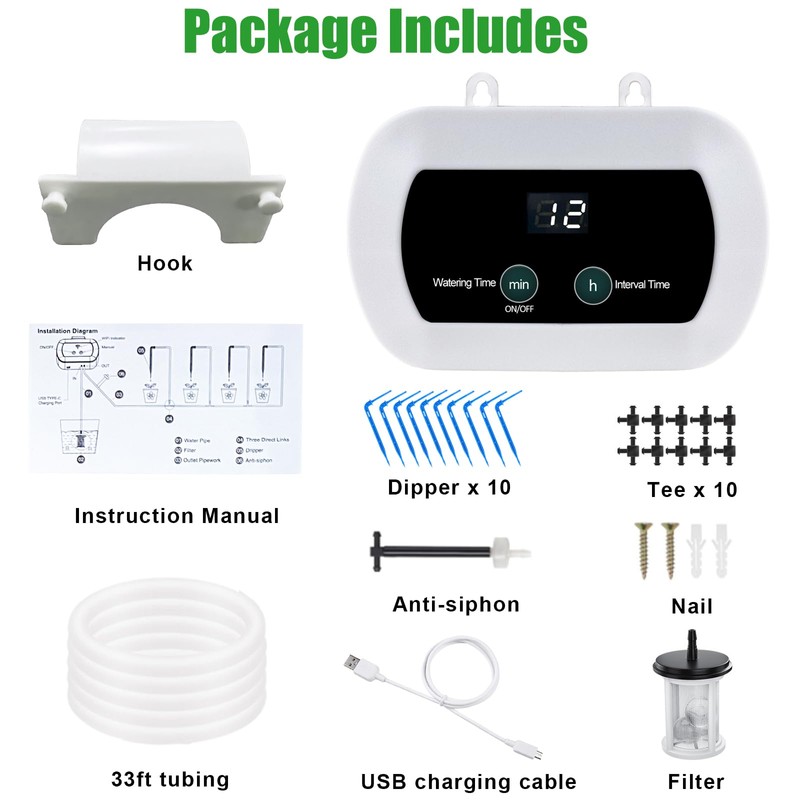 - ✅Aplicación versátil: perfecto para uso en interiores y exteriores en jardines, camas elevadas, patios, céspedes e invernaderos con cobertura de manguera de 33 pies