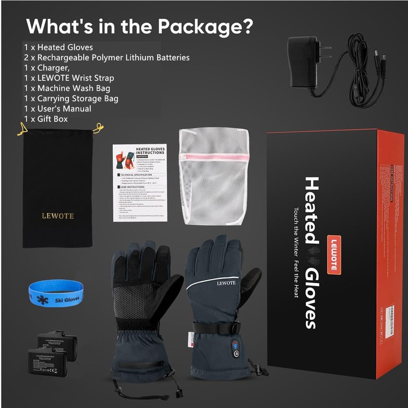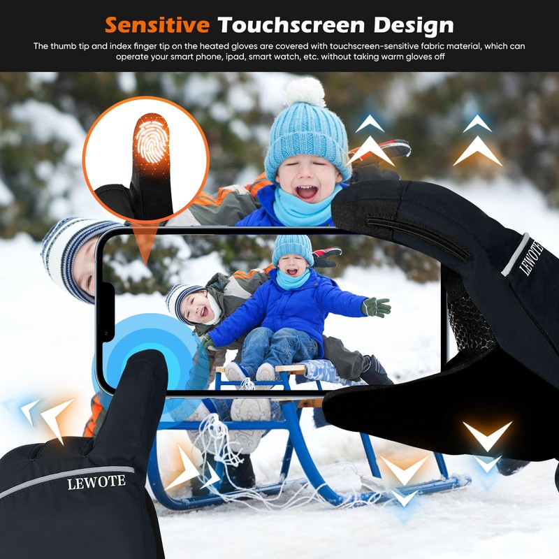LEWOTE Heated Gloves, Electric Rechargeable Heated Hand Warmer Ski Gloves for Men Women, Waterproof & Windproof Touchscreen Gloves for Cycling, Hunting, Skiing, Motorcycle Winter Sport (XL-X Large)