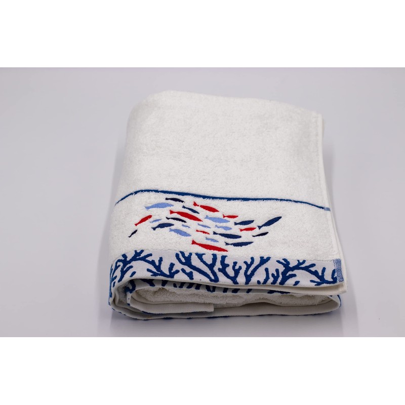 Lex's Linens Fish & Coral Embroidered Bath Towel