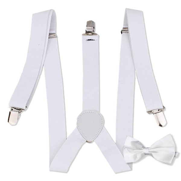 LEX STANDARD BL009 Men's Suspenders, Rubber Belt, Bow Tie, Y-Shaped, Black and White, Formal, Casual