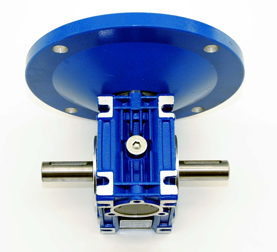 MRV030 series worm gear speed reducer. This 40:1 ratio speed reducer is rated for 0.19 HP input at 1750 RPM on a hollow 5/8" diameter x 1-7/8" long keyed shaft and 56C mounting flange. Output is 159 lb/in on a hollow 5/8" diameter x 2-1/2" long keyed shaft. High quality reducer has an all aluminum heat sinking designed housing with epoxy coating. You can add a single output shaft (5/8" x 1-1/2" usable) for $19.99 or a double output shaft (2X 5/8" x 1-1/2" usable) for $24.99. Shipping weight: 5 lbs. 4-5-5 |