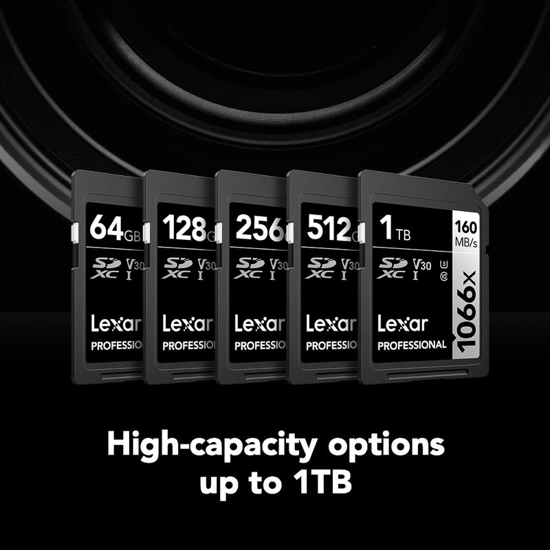 Lexar 64GB Professional 1066x SD Card, UHS-I, C10, U3, V30, Full HD, 4K, Up To 160MB/s Read SDXC Memory Card, for DSLR & Mirrorless Cameras (LSD1066064G-BNNNU)
