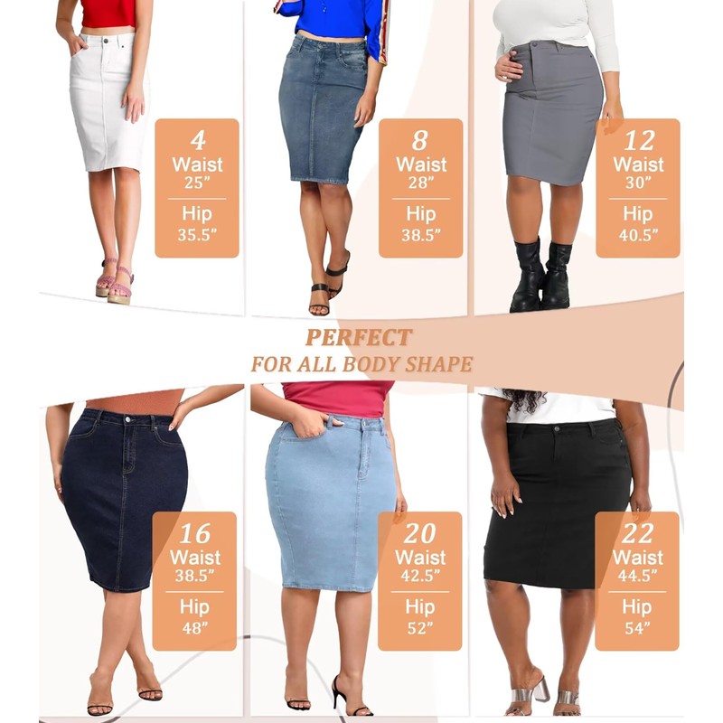 - All-Day Comfort: Crafted with soft, stretch denim for flexibility and movement, these skirts hug your curves while keeping you comfortable from morning commute to evening plans.