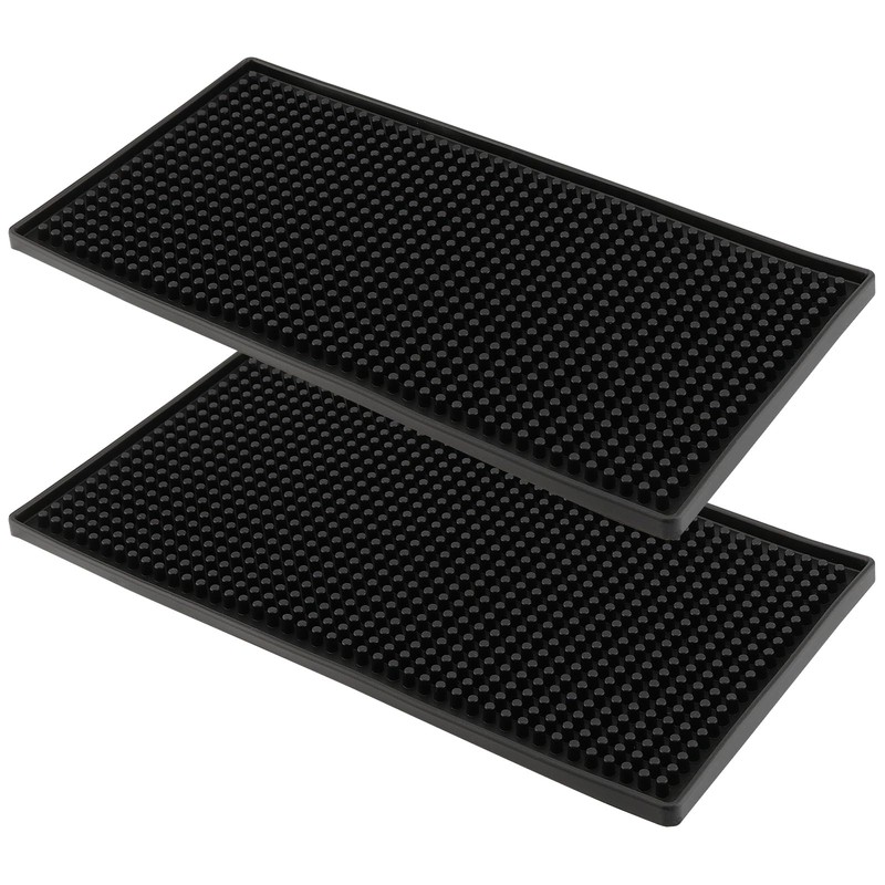 ♢There’s 2 pieces black rubber bar mats in size 30 x 15 x 1cm, this quantity and size is very suitable for placing glasses and bottles.
