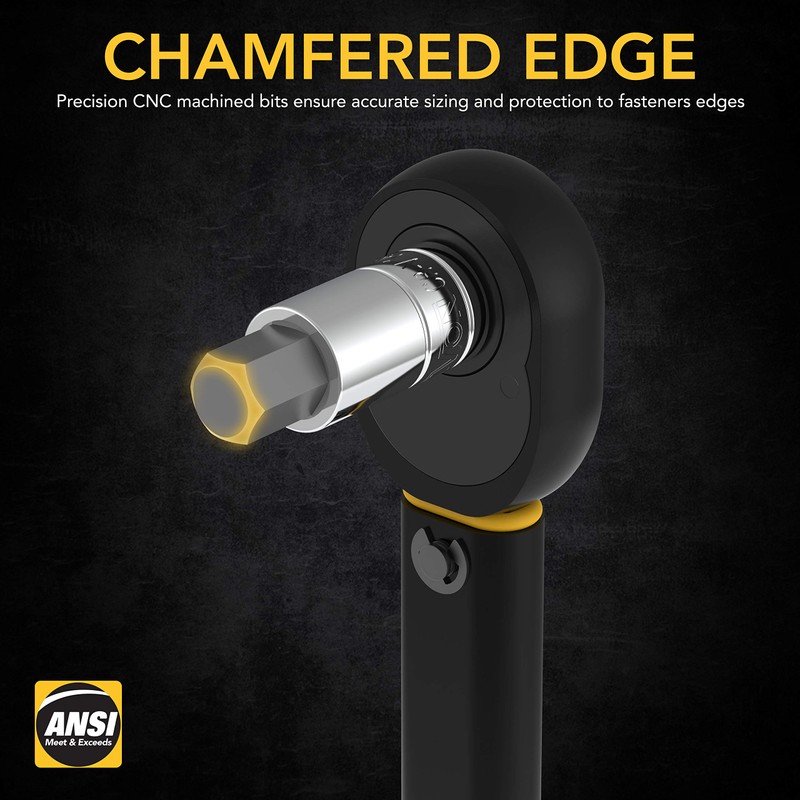 **Our bit set is designed to meet & exceed ANSI Standards as well as your expectations.** Every single bit is precisely crafted using CNC (‘Computer Numerical Control’) machine include Chamfered edges to ensure a smooth fit and protection for both your bit ends as well as your fasteners.