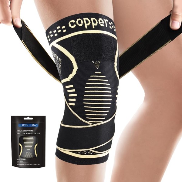 Lexniush Copper Knee Support for Men/Women, Adjustable Knee Brace with Straps, Knee Compression Sleeve for Running, Sports