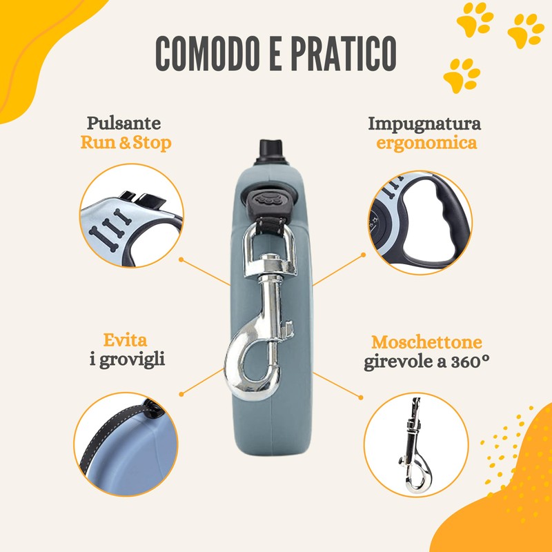- ANTIGROVIGLIO RETRACTABLE LEASH to give the right freedom to your 4-legged friend, in moments of privacy in doing his needs or to go to smell the grass without having to follow him and dirty your feet. Free yourself from thoughts