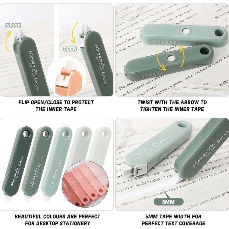 • Portable & Long-Lasting: Each 0.2" wide correction tape offers 16.4 feet (5m) of coverage - enough for hundreds of corrections. The compact, pocket-sized design with protective cap fits perfectly in pencil cases or bags, keeping the tape clean and ready for school or office use.
