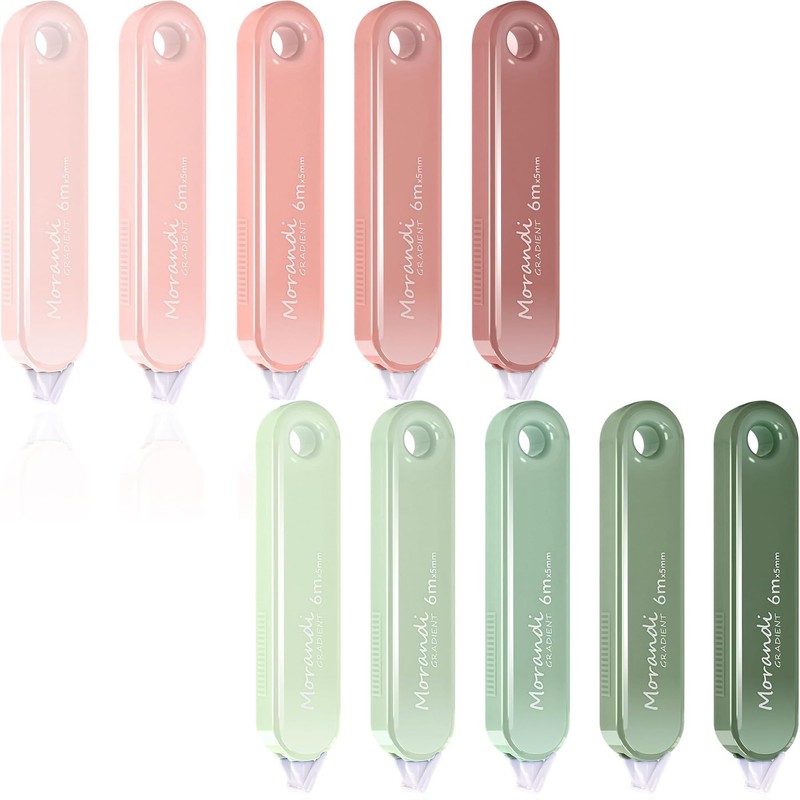 • 10 Gradient Color Set: Lexziuo's 10-pack correction tape set features beautifully coordinated pastel colors (pink/green gradient) that blend aesthetically while covering errors. Each ergonomic oval-shaped dispenser ensures comfortable grip for both left and right-handed users, making corrections effortless and stylish.