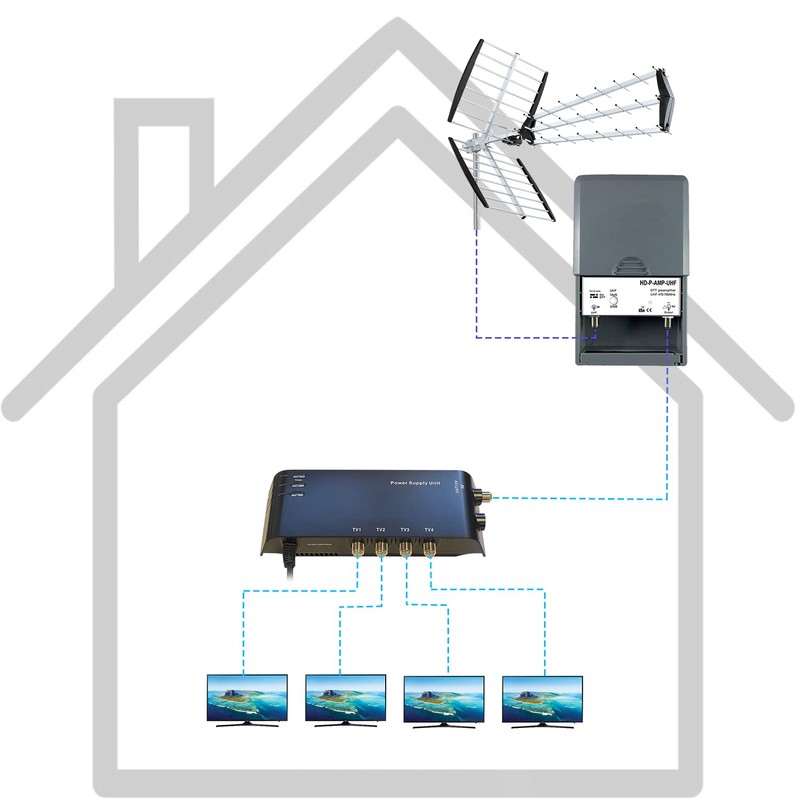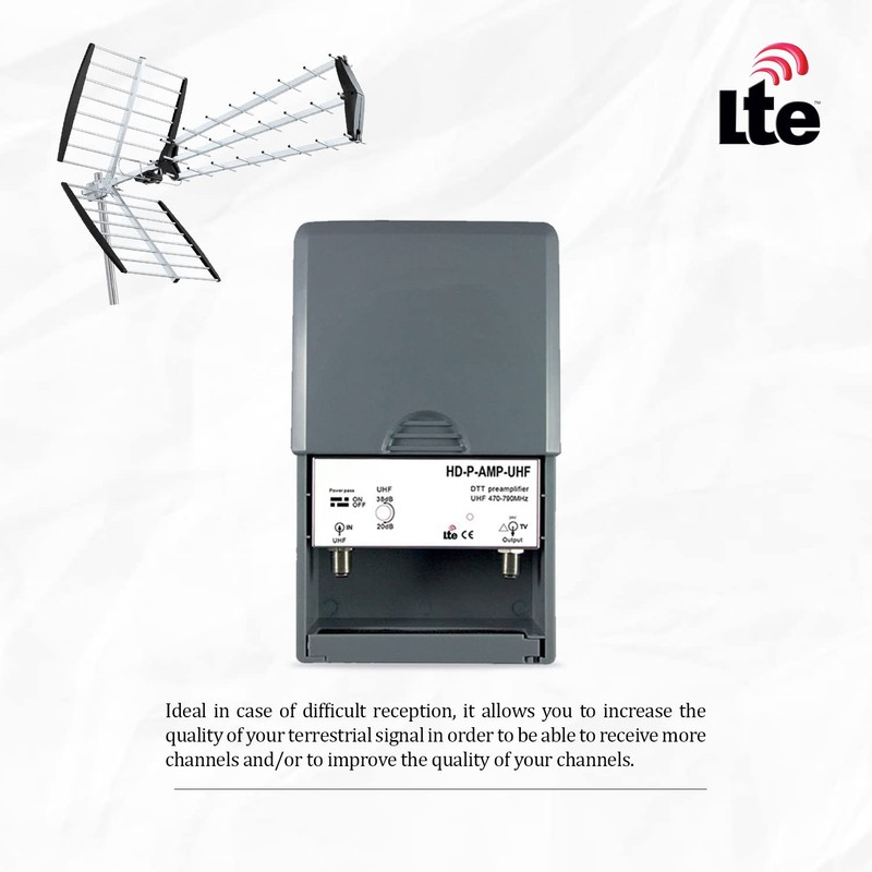 • This terrestrial signal preamp attaches to the most finished antenna to improve signal quality without the interference being multiplied. LTE filter power supply not included.