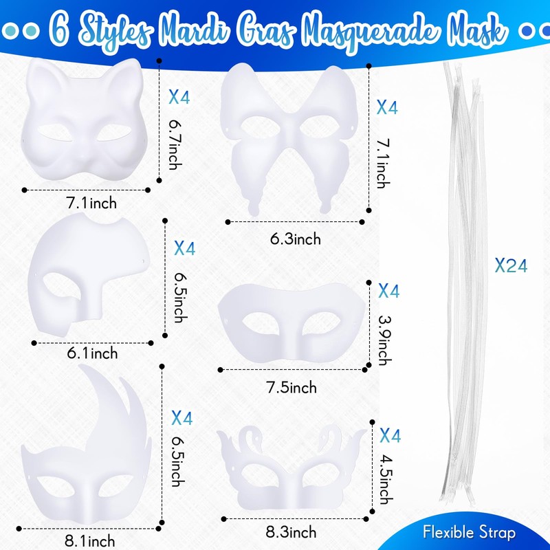 - Durable Material: made of sturdy paper cardboard, this Mardi Gras blank mask is nice for multiple performances, cosplay parties, and dance balls; It's easy to paint and glue on, and strong enough to last through any event