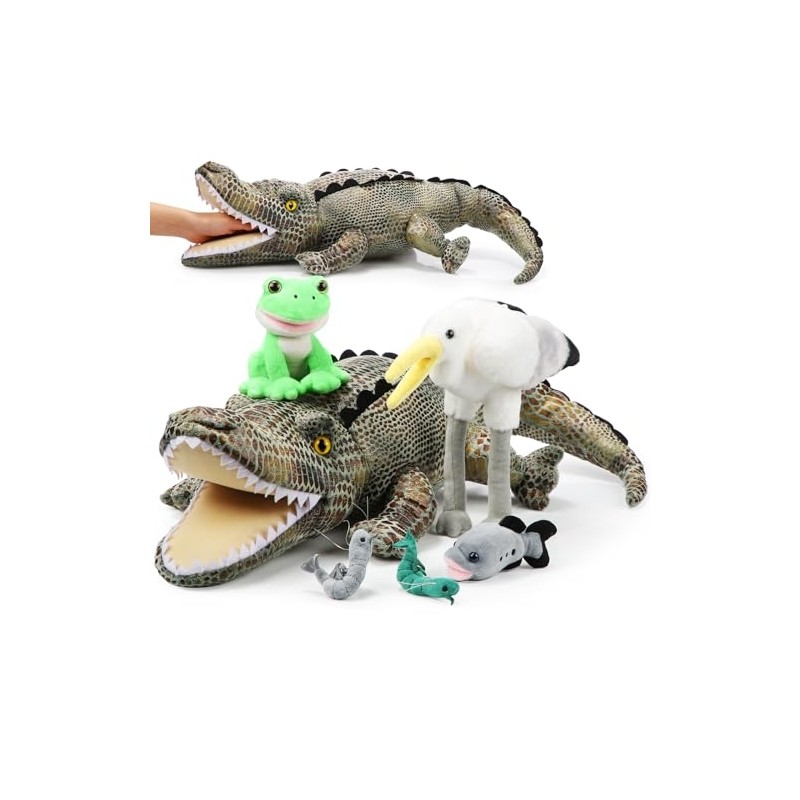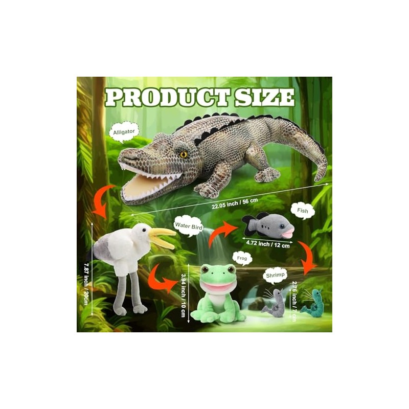• Package Includes: these plush crocodile animals play set you receive include a crocodile, a waterfowl, a frog, a fish and two shrimps, the 6 in 1 combo set is lively and ideal for story time and imaginative play