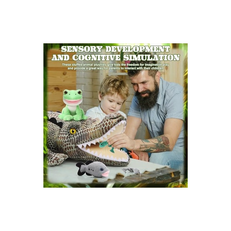 • Large Size Plush Crocodile Toys: our plush crocodile toy is 22 inches long and can hold up to 5 animals, you can design some games for family members to participate in, which helps you to understand the food chain during play and enhances family relationship