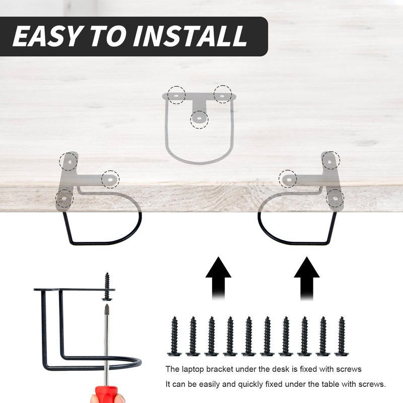 - EASY TO INSTALL The laptop mount under desk is screwed on and attaches easily and quickly with the screws directly under the table.