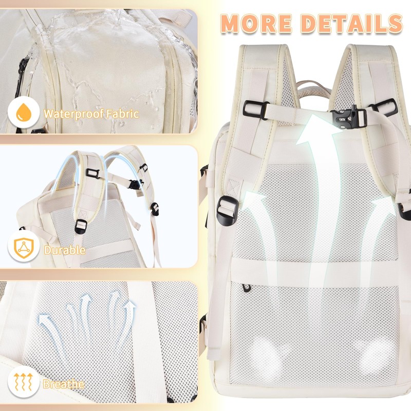 - Smart Compartment: Separate wet pocket, laptop bag, inner mesh bag with zipper, open inner pockets, front bag, anti-theft phone pocket, and large main compartment for clothes and travel essentials.Main pocket can be opened 180 degrees like a suitcase, making it easier to take and put things.