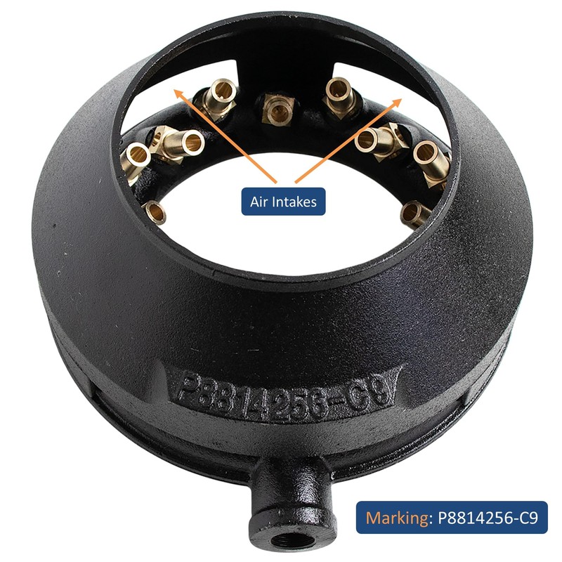 - Specifications - Model: LYS-WR-JBC16LP. Overall Dimensions: 9-3/8” x 10-1/4”. 1/2” NPT inlet gas pipe. Net Weight: 9.3 LBS. Cast iron body, 16 copper nozzles. 3/4" hole for 1/2" gas pipe. Marking: P8814256-C9.