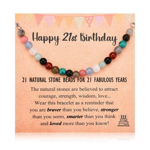 - 21st Birthday Gifts for Her: 21 Natural Stone Beads for 21 Fabulous Years! The natural stones are believed to attract courage, strength, wisdom, love. This bracelet with special meaning and inspirational message card will be a meaningful and unique birthday gift for women to celebrate her wonderful 21st birthday!
