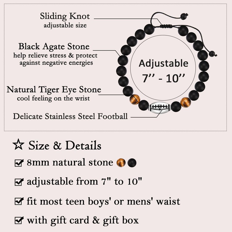 - Material: This boys bracelet is made of tiger eye stone, black agate stone and a delicate stainless steel football, which is suitable for daily wear and any occasions.