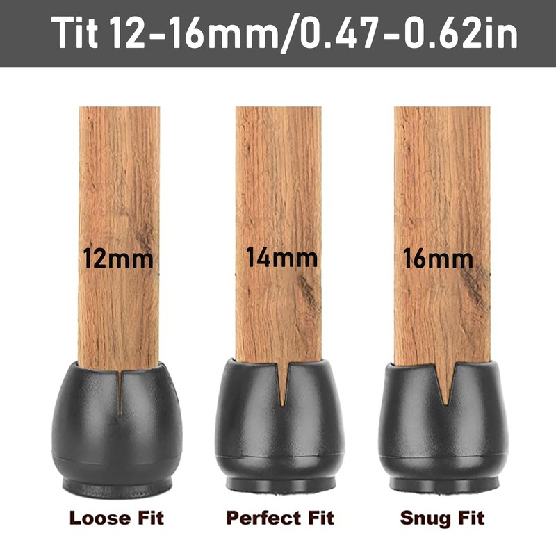 - Product size: Please check the size before purchasing. The chair leg protectors fit chair legs with a diameter of 12-16 mm and fit legs of different sizes.