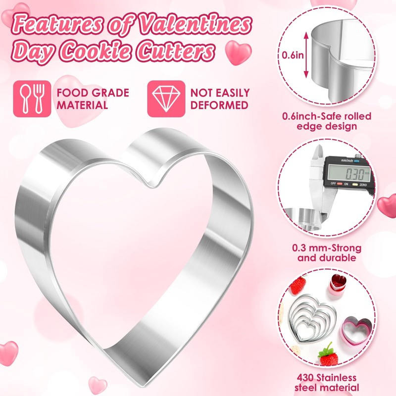 - [Wide application]: Valentine cookie cutters can be applied to heart cookies, breads, sandwiches, cheeses, biscuits, and more; Also suitable for Valentine's Day, Valentine's Party, weddings, engagement parties, date nights, holidays or love theme baking decoration party. The heart shape cutter made with these tools can make your Valentine's Day, birthday, and anniversary more atmospheric. Involving kids in the cookie-making process not only strengthens the parent-child relationship but also helps develop their hands-on skills and creativity