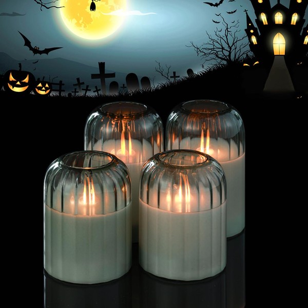 - Size of battery candles: This set of 4 pumpkin green glass jar flameless candles measure 3 inch in diameter, they can sit on the styling holders as festive set. They can be paired in a range of heights, including 4, 4, 5, 5 inches