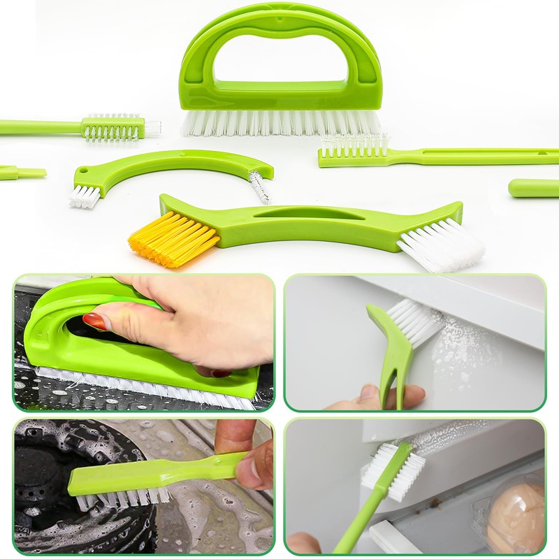 LFBEST Grout Brush 5 in 1 Tile Joint Brush Grout Cleaning Brush Multifunction Joint Scrubber Shower Cleaning Brush for Bathroom, Kitchen, Household and Tile Cleaning, Green