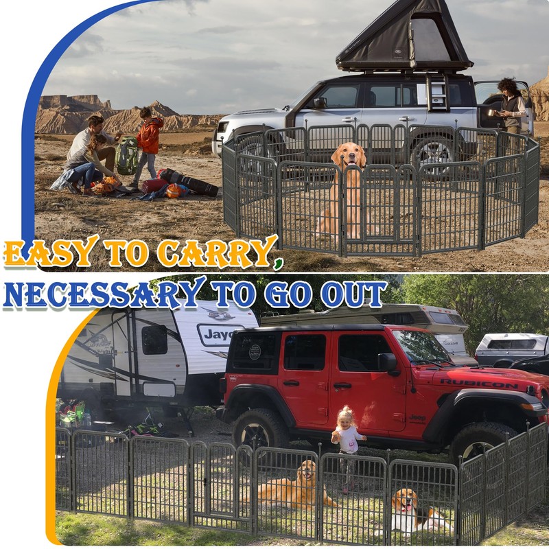- Versatile Outdoor Freedom: LFCREATOR dog playpen transcends indoor boundaries, offering a robust solution for outdoor adventures like RV trips, camping or yard as well. Built with weather-resistant materials and a sturdy frame with Anti-Rust Coating, it withstands outdoor elements, ensuring your dog enjoy the outdoors safely. Easy assembly and disassembly make it a hassle-free choice for pet owners on the move; Bid farewell to flimsy outdoor dog playpen; Our metal dog playpen is built to last, keeping your pets secure wherever they roam