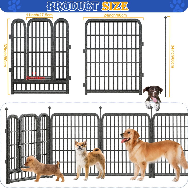 - Flexible and adjustable fence: The LFCREATOR flexible and adjustable pet fence offers unparalleled versatility with 16 panels design. You can flexibly combine the pet fences panels to form fences of different sizes and shapes to suit different indoor or outdoor spaces according to actual needs.The portable dog playpen are simple to assemble, no professional tools are needed, you can easily install or adjust the shape of the fence by yourself, saving time and effort.Our dog enclosure is designed to accommodate dogs of all sizes and breeds, with ample room for them to move freely and engage in natural behaviors such as running, sniffing, and digging