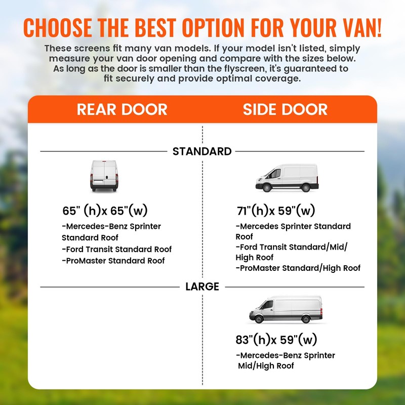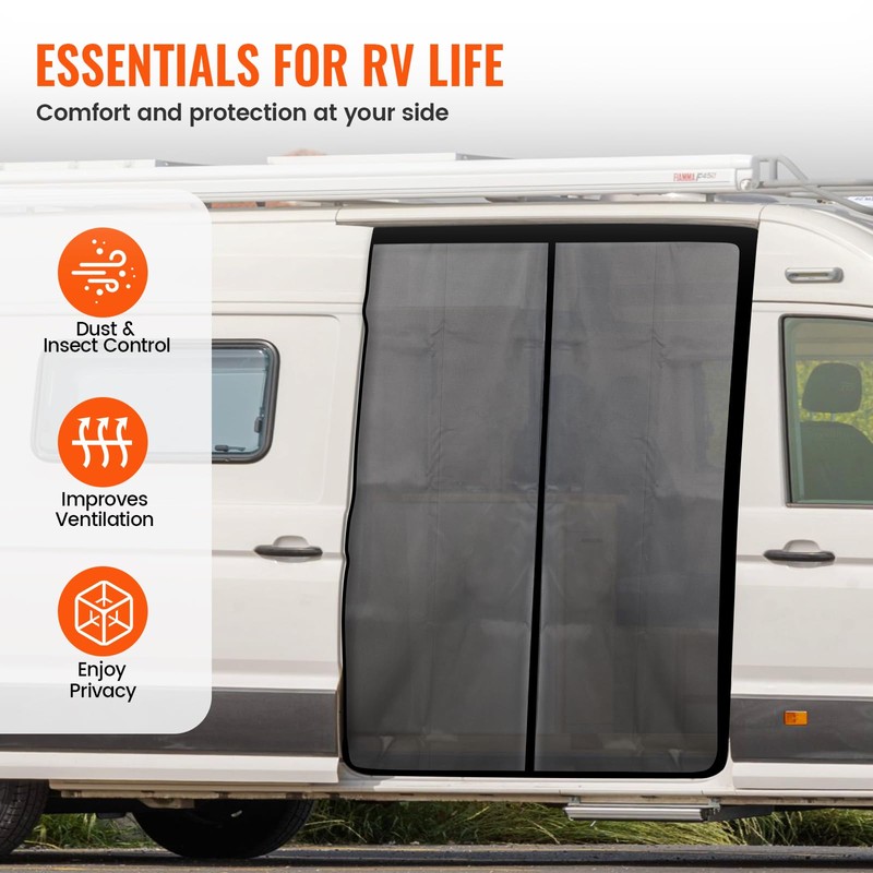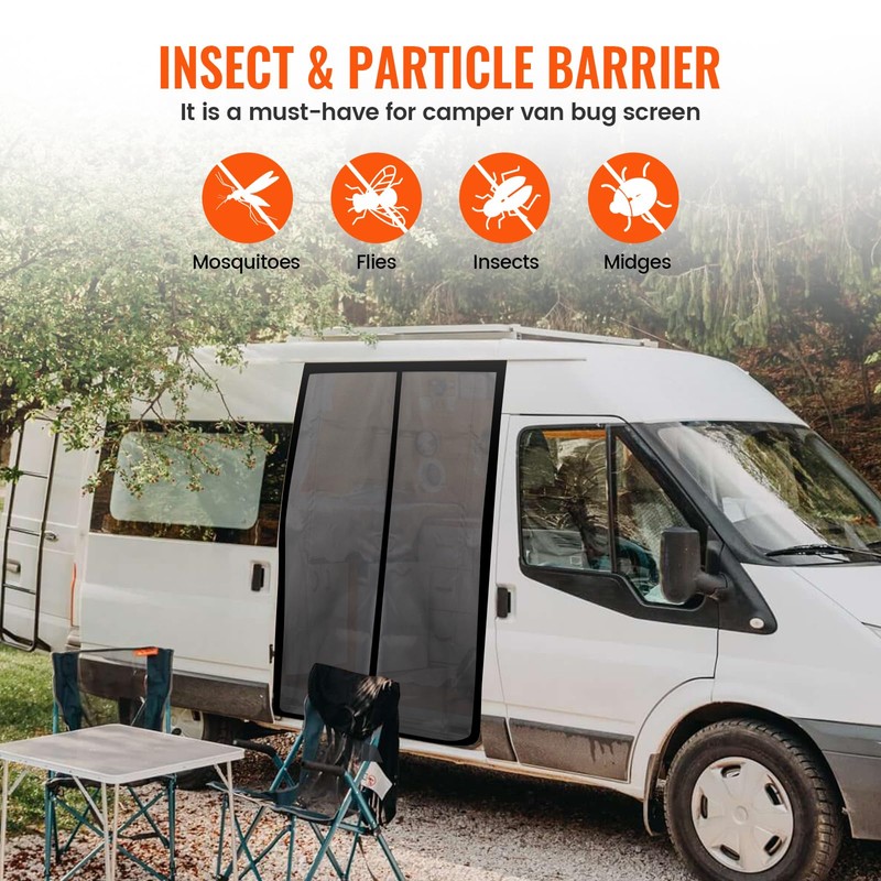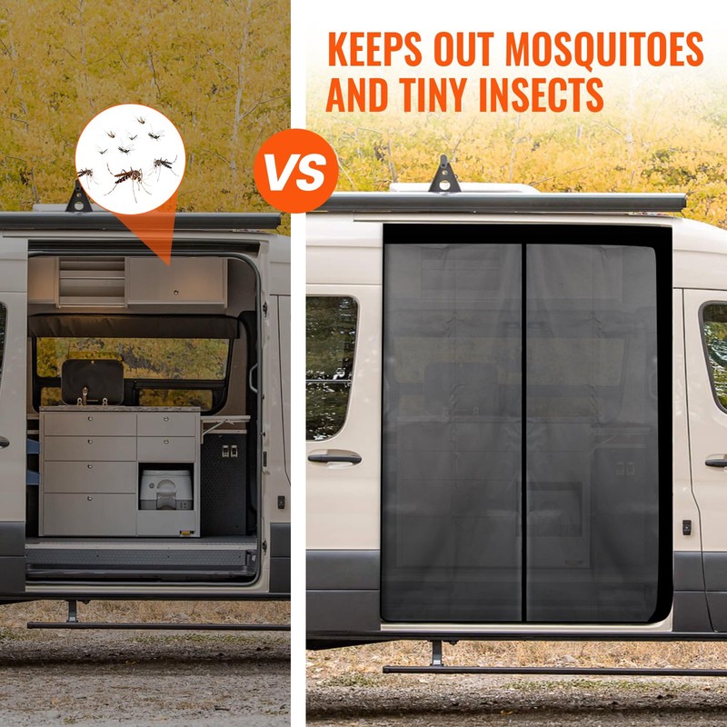 - 【Universal Size】Measuring 71''H x 59''W, this van bug screen fits perfectly on most roof vans, making it an ideal choice for your Mercedes Sprinter medium and high roof side door. Fits most campervans—simply measure your door opening to ensure a perfect, snug fit.