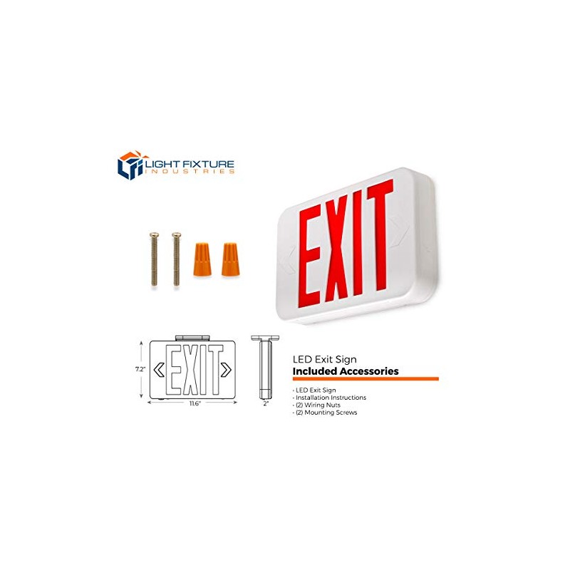 LFI Lights | Red Exit Sign | All LED | White Thermoplastic Housing | Hardwired with Battery Backup | Optional Double Face and Knock Out Arrows Included | UL Listed | (1 Pack) | LEDJR-R