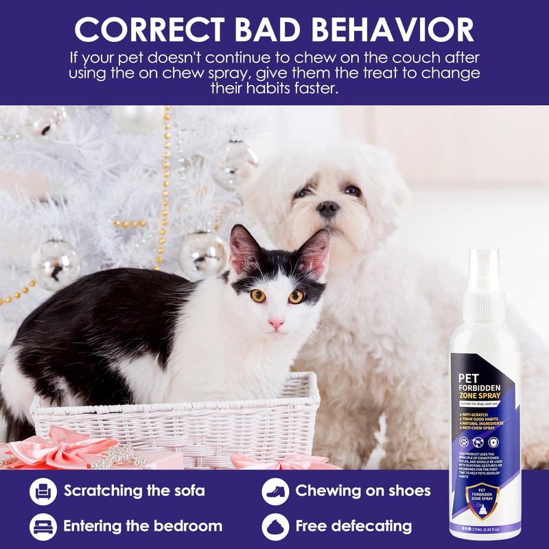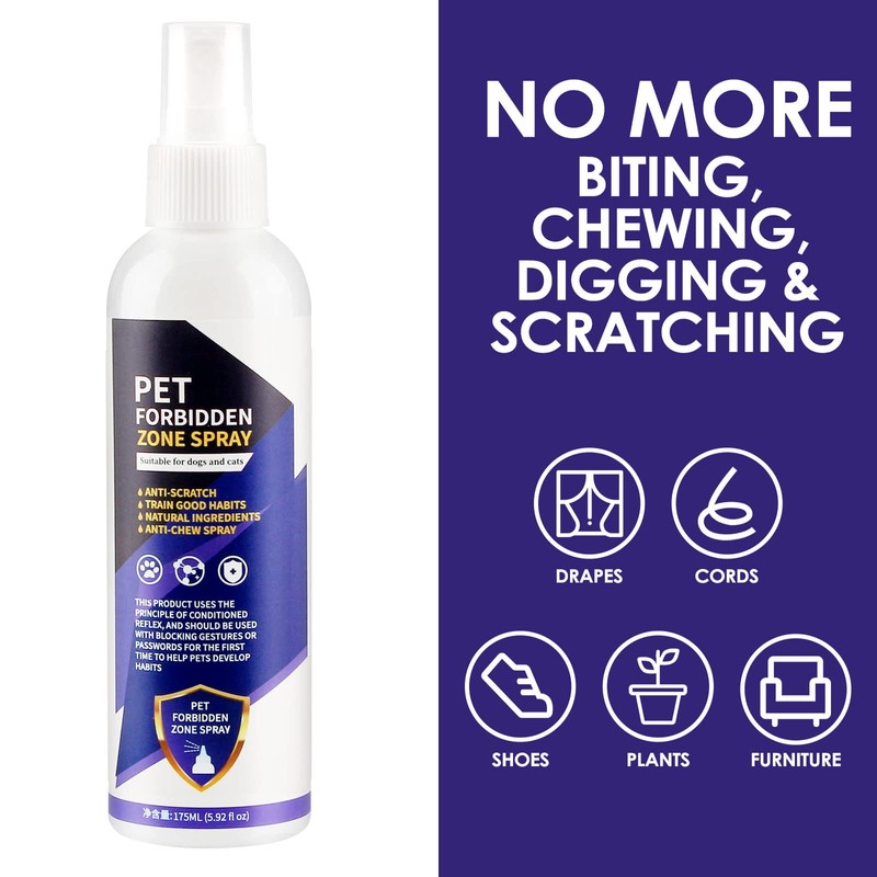 - 【Easy To Use】No tedious steps are required, just spray it where you want your pet to stop chewing or licking. We recommend using the anti-scratching spray 3 to 4 times a day in the first month, then later use as needed.