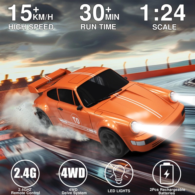 DRIFT REMOTE CONTROL FUN: You not only play with it using the remote control, but also place it as an exhibit on display shelf. Being the ideal toy gift for kids as their hobby RC drift cars. Perfect for birthday gifts, stocking stuffers or rewards and so on. If you have any questions, please feel free to contact us, we will try our best to solve it within 24 hours.
