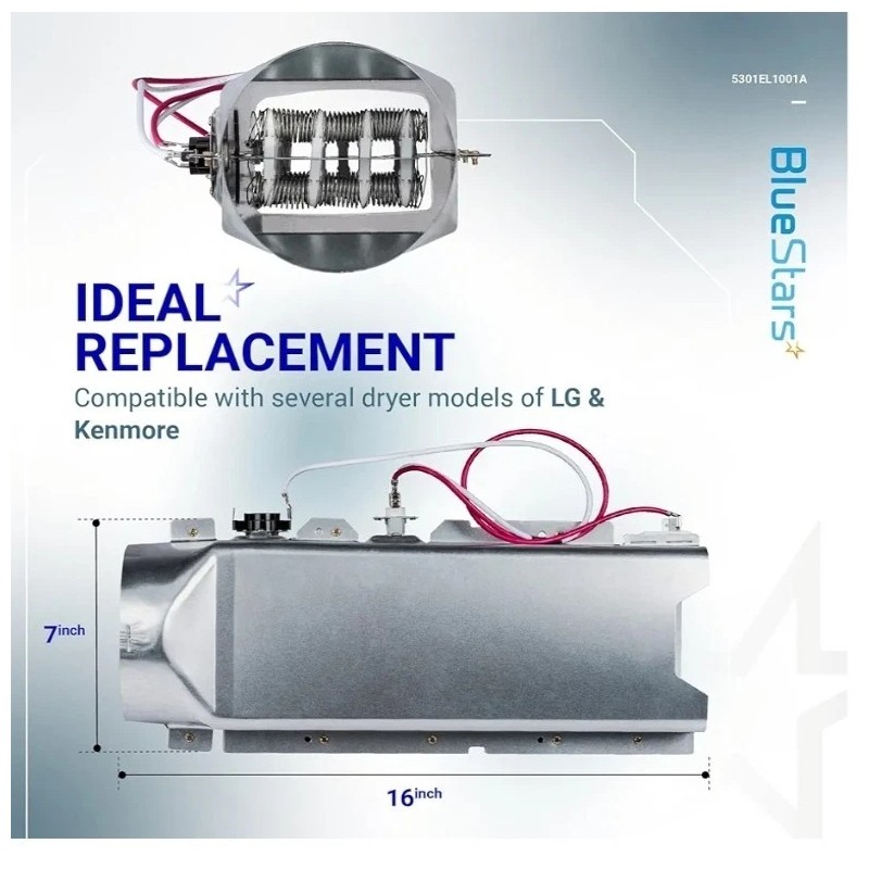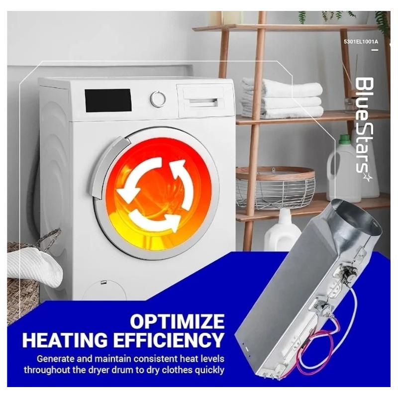 BlueStars 5301EL1001A Dryer Heating Element Assembly – Compatible with LG DLE5977W DLE2240W DLE3170W DLE2516W DLE3777W DLE3733S Dryers - Replaces 5301EL1001J 5301EL1001H AP5072170 PS3527790 PS3527791