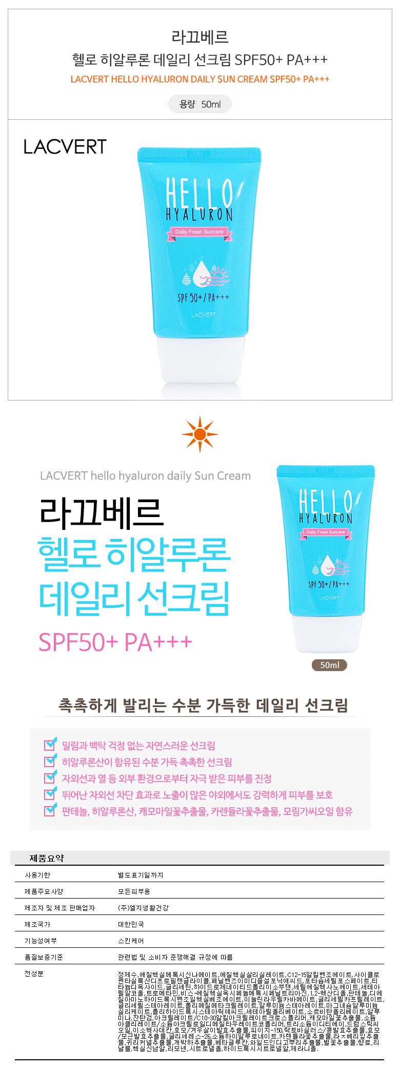 LG Lacvert Moisture Sunscreen 50ml Daily Sunscreen 2ea