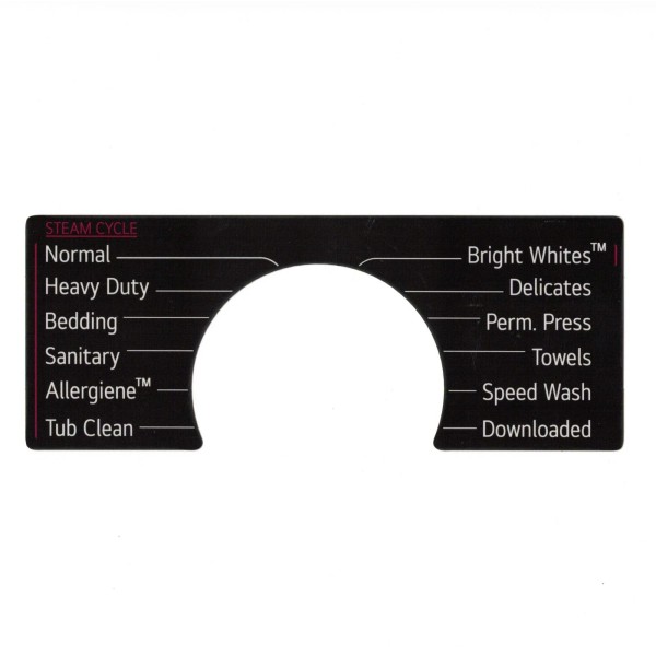Is the writing / text smearing, smudging, or rubbing off on your LG washer?  This label decal is a replica sticker scaled to fit around the center knob on your control panel.  This sticker label has been tested to be completely resistant to bleach, laundry detergent, and Spray n' Wash.  No more smudged text!