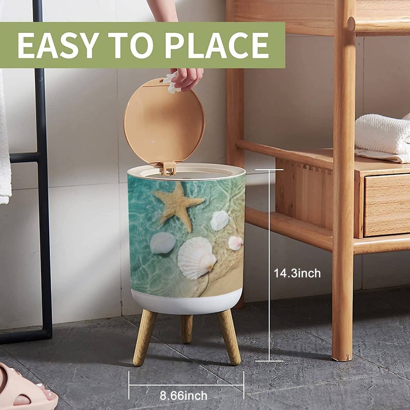LGCZNWDFHTZ Small Trash Can with Lid for Bathroom Kitchen Office Diaper Starfish Seashell Summer Beach sea Water Summer Summer time Bedroom Garbage Trash Bin Dog Proof Waste Basket Cute Decorative