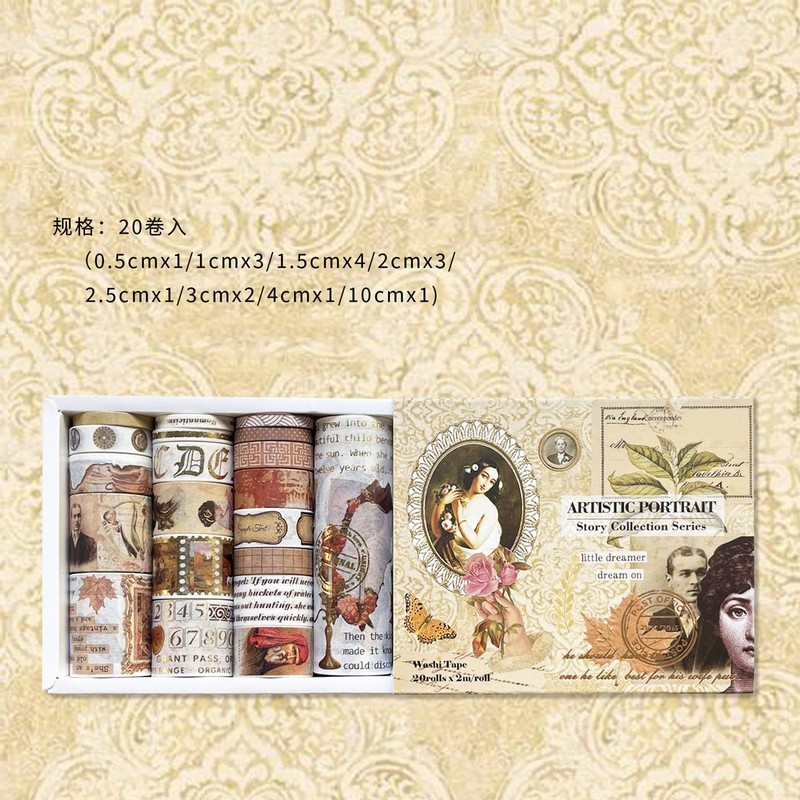 LGEGE 20 Rolls Artistic Portraits Washi Tape Set,5/10/15/20/25/30/40/100mm Wide,Stills, Celebrities, Beauty,Gold Foil Masking Tape Décor for Scrapbook,Bullet Journal,Gift Wrapping,DIY Craft (2m)