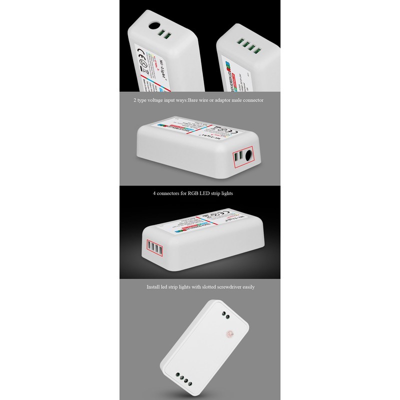 - 2)Smartphone APP Control:With a Mi.Light WiFi iBox1(ASIN B01MRPMW2X) or iBox2(ASIN B01N7C3HXQ),you can control this led strip controller receiver box on your smartphone.Download Mi.Light 3.0 APP,connect it to your home wifi,then you can control it from anywhere in the world.WiFi iBox isn't included in this package!