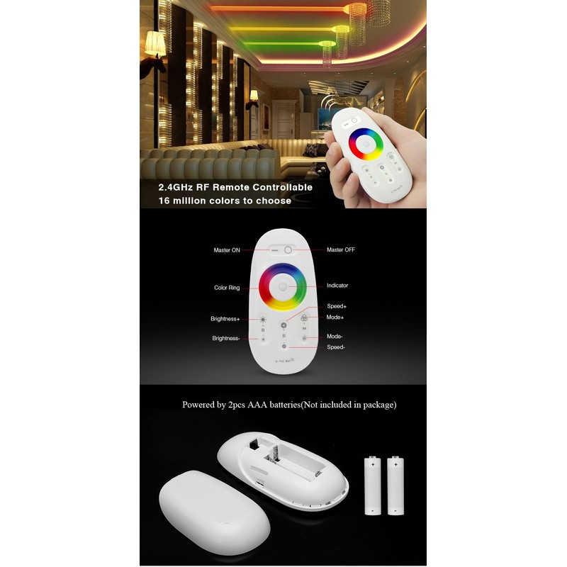 - 1)Remote Control:You can control this strip controller receiver box with 2.4GHz wireless remote.30 meters=98 feet control distance,high wall-through ability,you can control led strip light easily.Remote is included in this package(Without batteries)!
