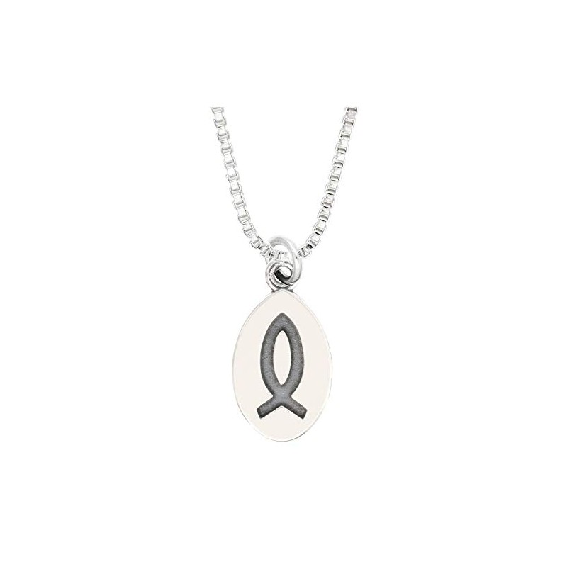 LGU Sterling Silver Oxidized Christian Fish Jesus Fish Disc Charm -with Options (Charm Necklace)