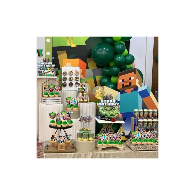 - 25pcs Game Cake Toppers Cake Decorations, 1 Large Happy Birthday Topper 8 Small for Sandbox Game Cupcake Toppers Happy Birthday Cake Decorations for Sandbox Kids