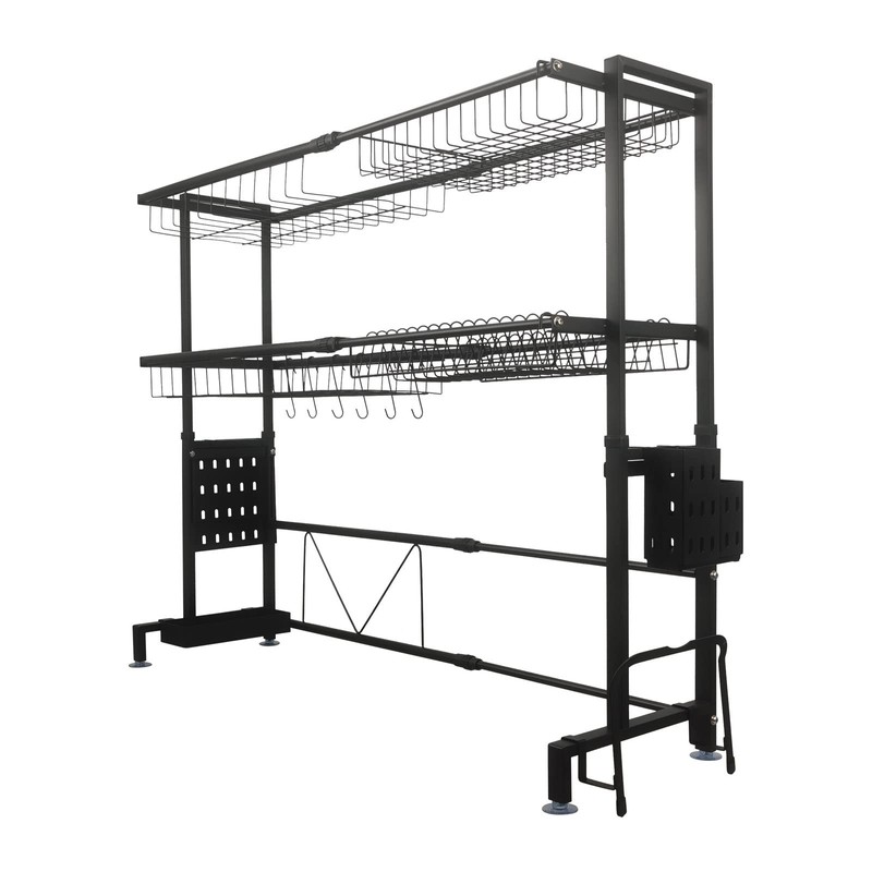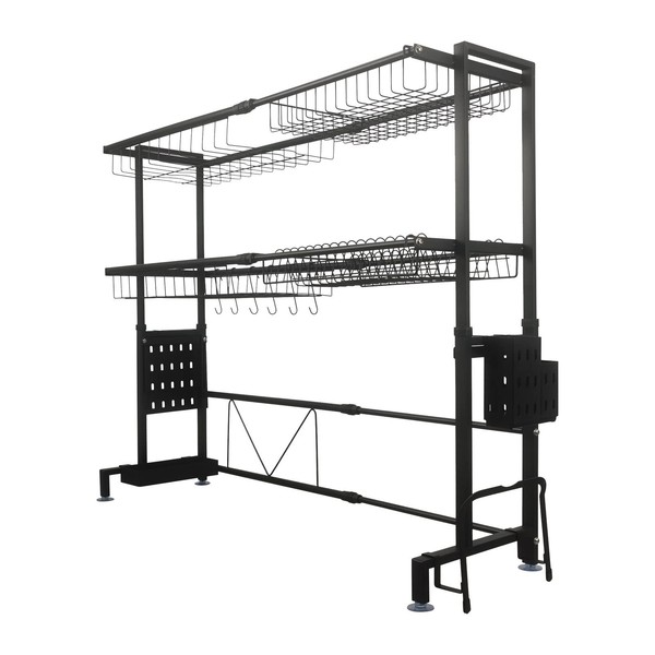 LGXEnzhuo Double-Layer Kitchen Sink Draining Rack Stainless Steel Storage Rack Height and Length Retractable with Baked Paint