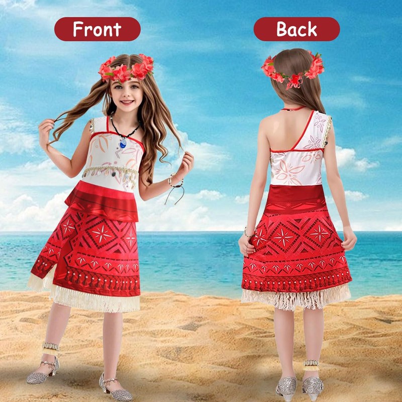 LGZIN Vaiana Costume Girls, Moana Costume Children, Moana Princess Dress with Necklace, Crown Garland, Bracelets and Anklets, Moana Fancy Dress Outfit, Moana Cosplay Clothing for Carnival