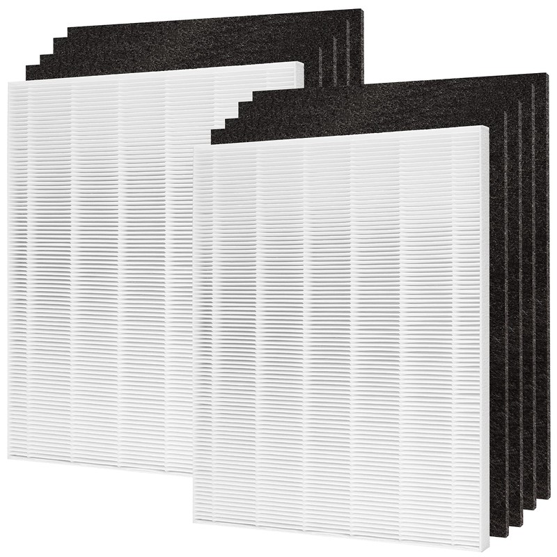 - Premium D480 H13 True HEPA replacement filter effectively remove up to up to 99.97% of airborne bacteria, fine dust, cigarettes smoke, mold spores and particles down to 0.3 microns in size; Activated Carbon Pre-filter removes large dust and mold, human hair, pet har and prolongs the lifespan of the HEPA filter, and it is also effective at reducing odor and harful gas to keep your place fresh and odor-free