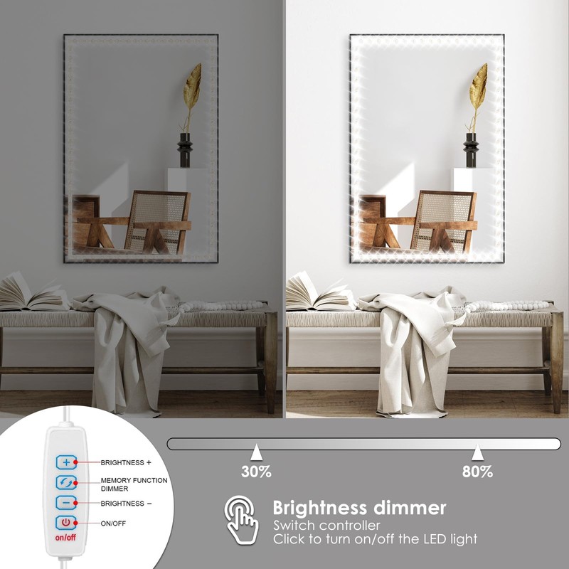 - 9 adjustable brightness: this 2 metre mirror light set has 240 dimmable LEDs, each LED light offers 9 levels of adjustable brightness. By pressing the "+" and "-" buttons, you can select the desired brightness
