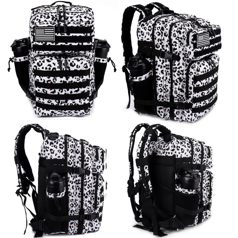 - 1. Military Tactical backpack size approx: 12inch x 20inch x 12inch, Capacity: 45L; Military backpack is made of 900 oxford nylon fabric, durable and water-resistant. Suitable for fitness, travel, hiking, camping, and other outdoor activities.