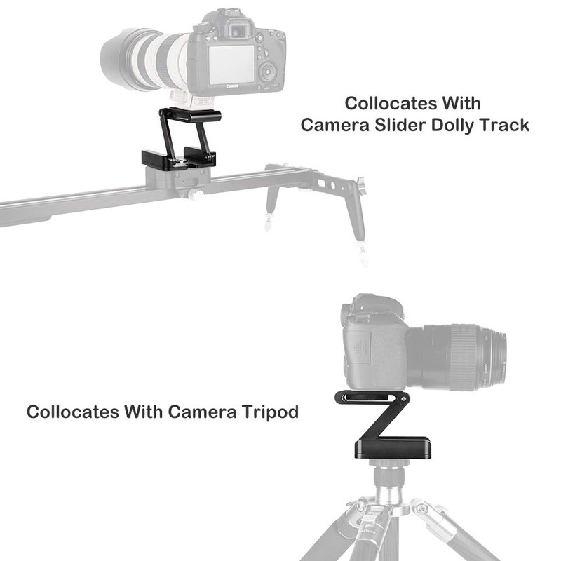 - 1/4" screw top could be connected with DSLR cameras; 3/8" thread screw bottom hole could work with tripod, slide rail, video track slider, slide rail and stabilizer for camera and camcorder.
