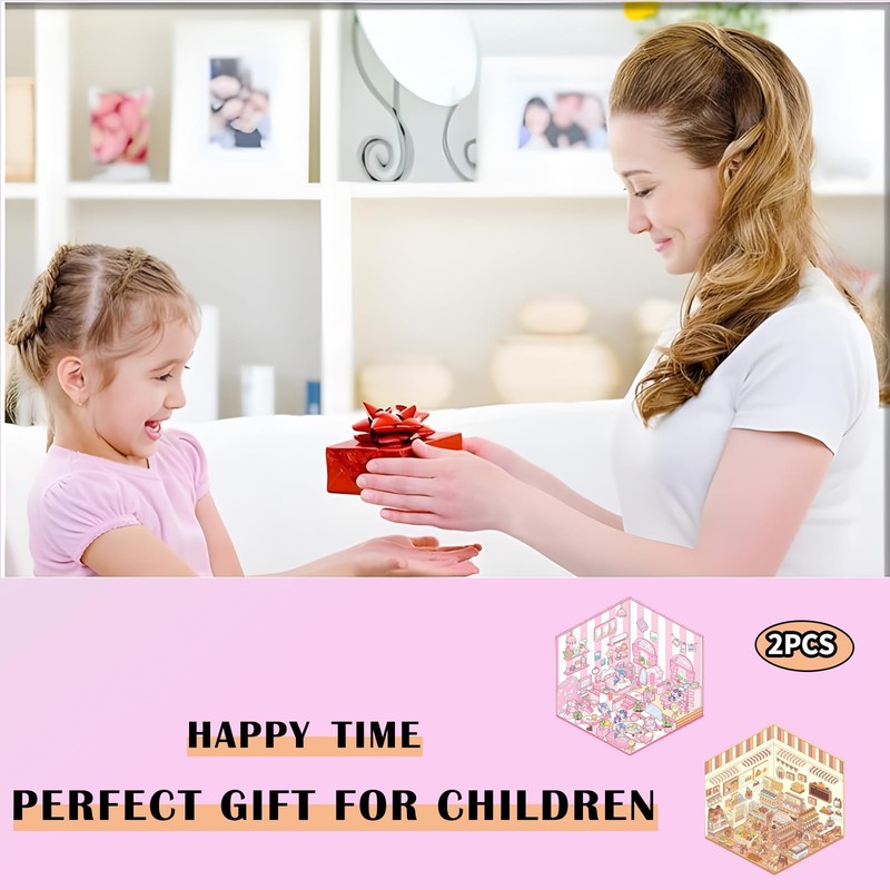 LHLZNB 3D House Stickers,3D House Sticker Set, 3D Sticker Scene, 3D Stickers, Coffee Shop/Restaurant/Bookstore, Cute Korean Cartoon Scene Stickers for Adult Kids Relief Stress Pass (2)