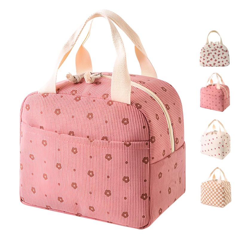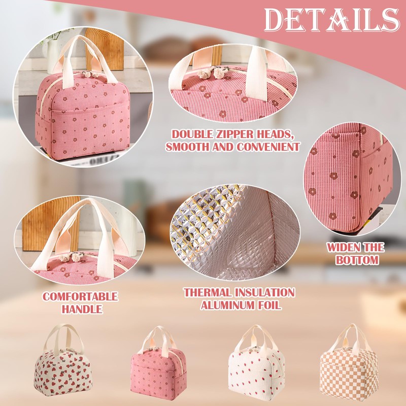 LHLZNB Insulated Lunch Bag for Women - Large Capacity Thermal Tote with Durable Work Lunch Box for Women & Girls, Leakproof Food Bag for Office, School, Picnic( White Strawberry) (Pink Little Flower)
