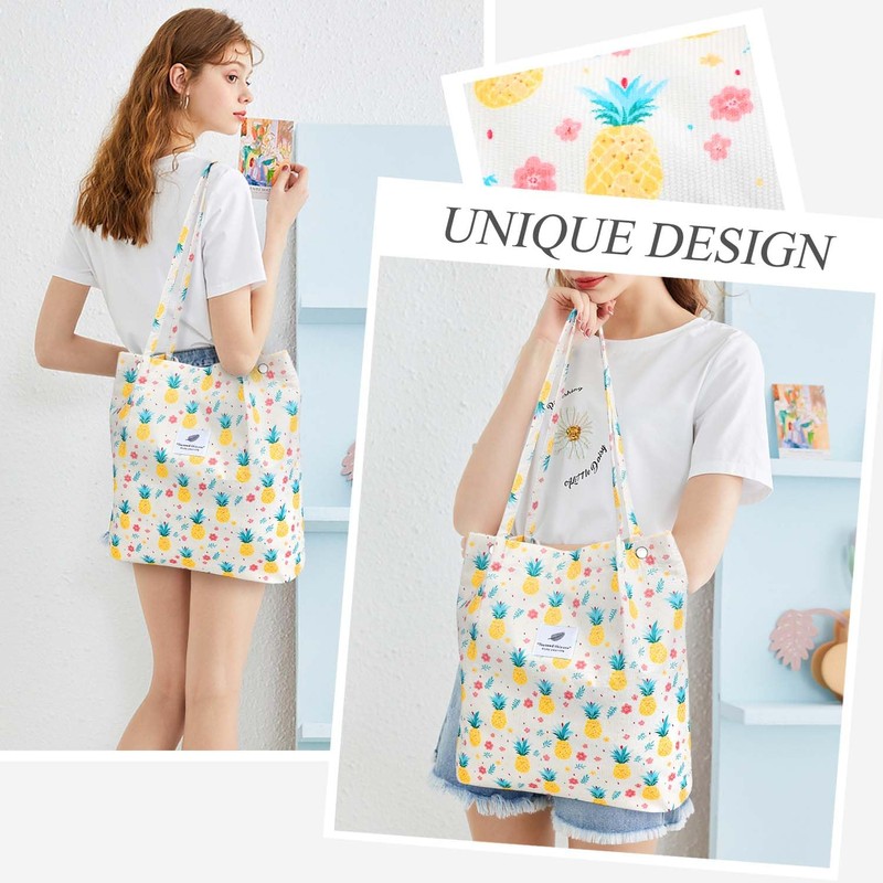 LHMTQVK Corduroy Tote Bags for Women, Large Capacity Corduroy Bag Reusable Grocery Shoulder Bag with Inner Pockets(Pineapple)